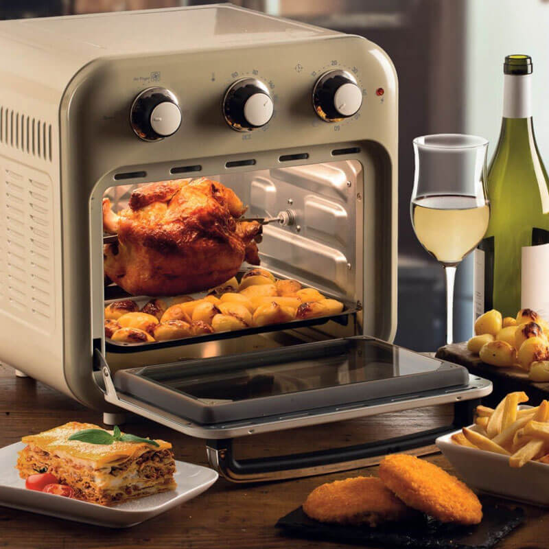 Въздушната камера на фурната Vintage обгръща храната на 360° и приготвя любимите ви сладки и солени ястия без добавена мазнина.