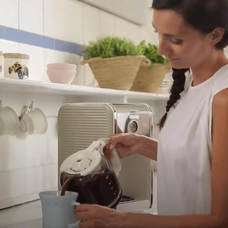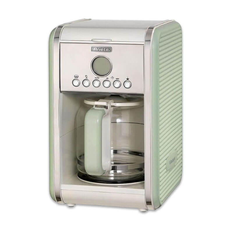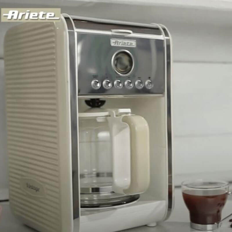 Кафемашината Americano от линията Vintage на Ariete ще разпространи прекрасен аромат на дълго, горещо и вкусно кафе във вашата кухня . Можете да приготвите от 4 до 12 чаши кафе едновременно благодарение на удобния дозатор.