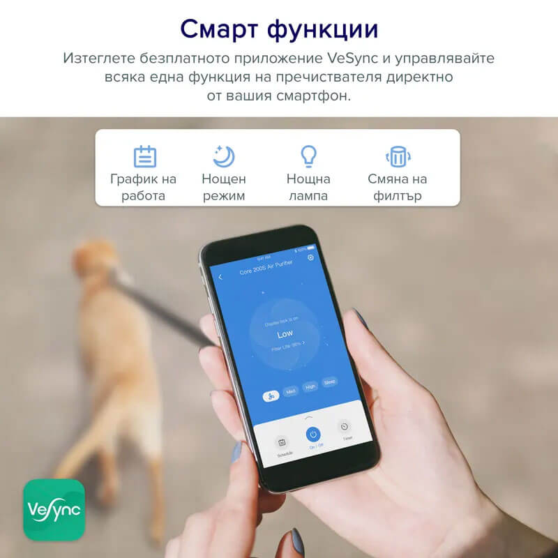 Може да управлявате всяка една функция на вашия пречиствател през безплатното мобилното приложение VeSync.