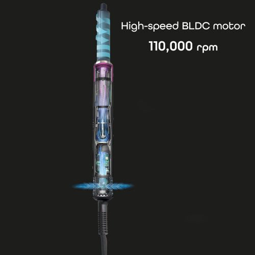 С мощен BLDC мотор с над 110 000 оборота в минута уредът предлага силен, но тих въздушен поток, по-дълъг живот и висока енергийна ефективност. Той е по-лек и икономичен от класическите сешоари, без компромис с производителността.