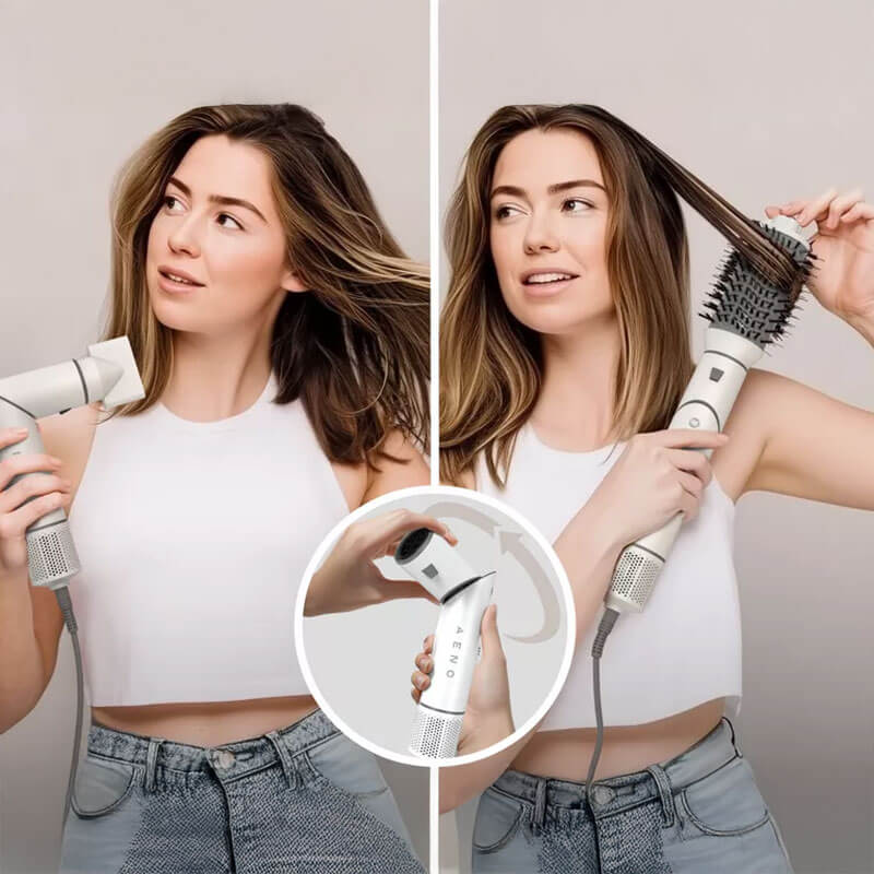 AENO HS1 е иновативен уред за грижа за косата, който комбинира функциите на мощен сешоар и многофункционален стайлер. С него постигаш гладка, обемна или естествено оформена коса само за минути – без увреждане и без излишно усилие. Благодарение на интелигентния дизайн с въртящ се механизъм, можеш да сменяш приставките бързо и лесно, което прави уреда изключително удобен за ежедневна употреба.