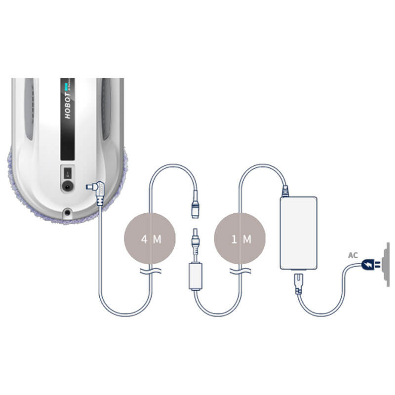 С 4-метров захранващ кабел HOBOT може да работи върху големи площи, дори когато контактът е далеч от прозореца.