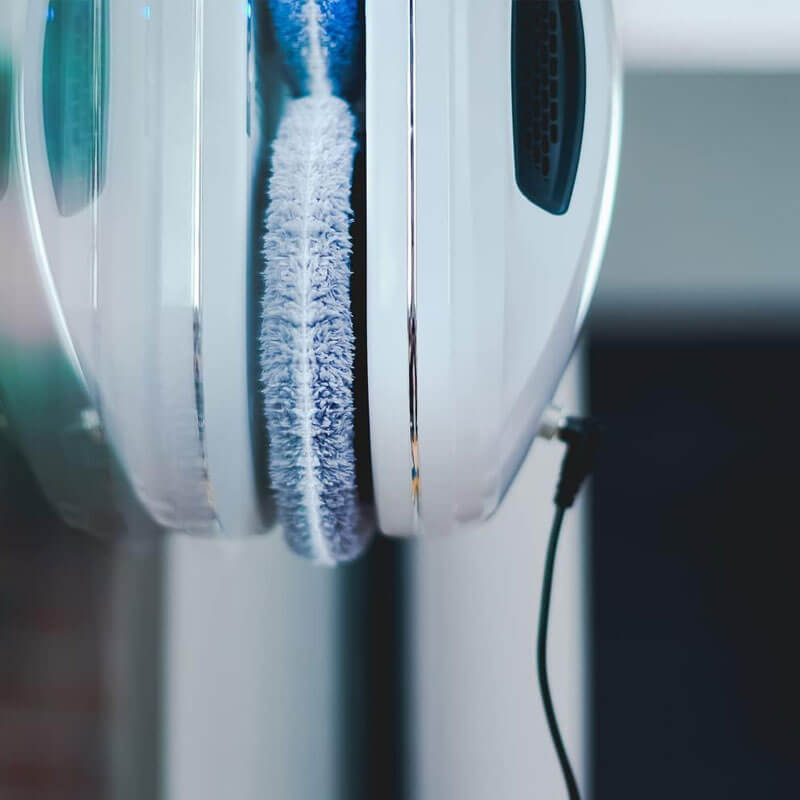 Инспириран от естествените движения на човешката ръка, HOBOT използва две специално проектирани въртящи се колела, които имитират ръчното почистване на стъкло. С до 70 оборота в минута роботът постига кристален блясък без следи и разводи.
