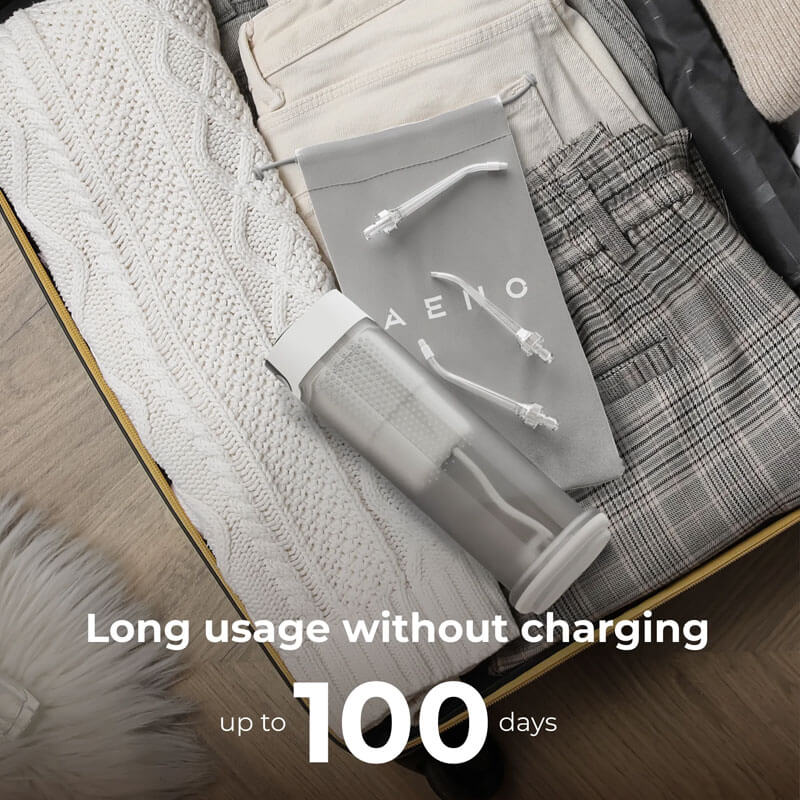 Уредът се отличава с компактен и портативен дизайн, голям прозрачен резервоар от 240 мл и автономност до 100 дни с едно зареждане. Вградената UV светлина автоматично дезинфекцира накрайниците, а паметта на устройството запазва любимия ви режим за следващата употреба.
