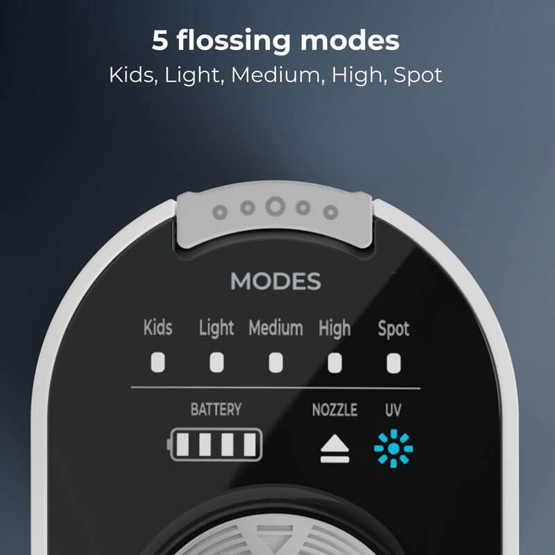От нежен Детски режим до интензивен Spot фокус, устройството предлага пет прецизни настройки. Всеки режим е създаден да отговаря на специфични нужди, като гарантира комфорт за децата и ефективност за по-сложни задачи като почистване на скоби или проблемни зони.