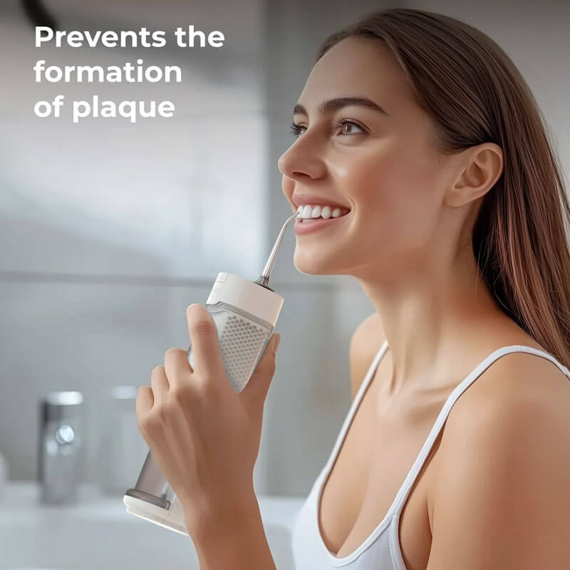 Мощният импулсен воден поток физически отстранява задържащата се плака между зъбите и по линията на венците, превантивно подпомагайки здравето на устната кухина.